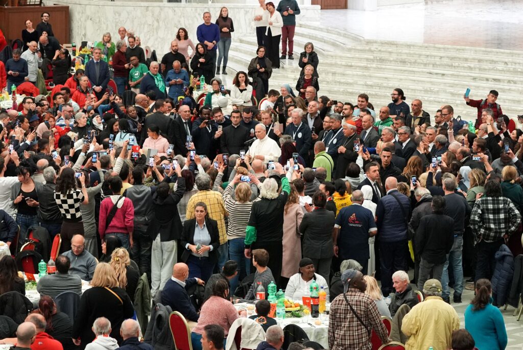 Antes de unirse a cientos de personas para almorzar, el Papa León XIV celebró la Misa del Jubileo de los Pobres, y oró para que todos los cristianos compartieran “el amor de Dios, que acoge, venda las heridas, perdona, consuela y sana”.