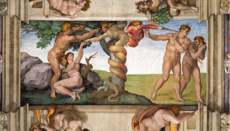 Algo similar ocurre en la Capilla Sixtina, donde Miguel Ángel pintó la escena del pecado original con una serpiente de torso femenino, una iconografía que no procede del texto bíblico, sino de tradiciones extrabíblicas conocidas en ambientes humanistas y hebreos del Renacimiento.