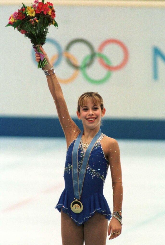 La medaglia d'oro olimpica statunitense Tara Lipinski, cattolica, saluta la folla dopo aver ricevuto il premio a Nagano, in Giappone, il 20 febbraio 2018. Lipinski, ammiratrice di Santa Teresa di Lisieux, è diventata la più giovane campionessa olimpica di pattinaggio artistico femminile della storia (Foto di OSV News/Kimimasa Mayama, Reuters).